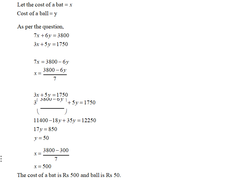 (ii) 5 pencils and 7 pens together cost ` 50, whereas 7 pencils and 5 pens together cost ` 46. Find the cost of one pencil and that of one pen.