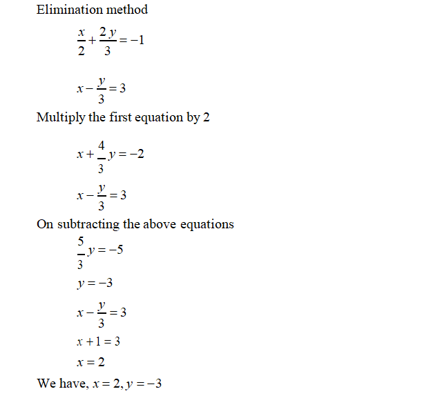 (iv) x/2 + 2y/3 = -1 and x- y/3 = 3