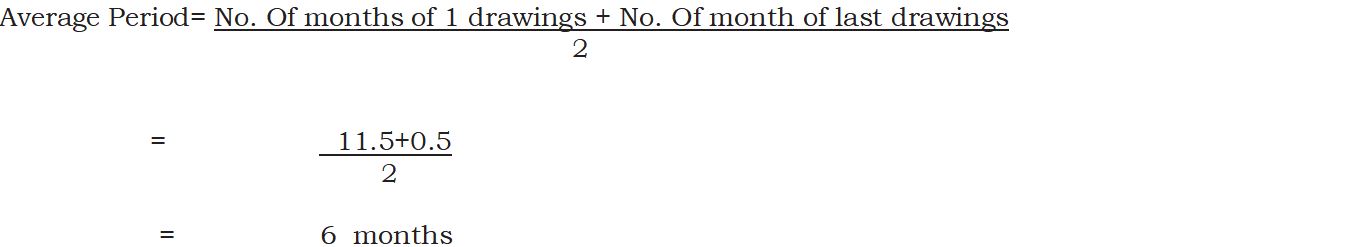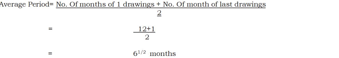 Example: Suppose Satish and Tilak are partners in a firm, sharing profits and losses equally. During financial year 2016–2017, Satish withdrew Rs. 30,000 quarterly. If interest is to be charged on drawings @ 8% per annum, the calculation of the average period and interest on drawings will be as follows: