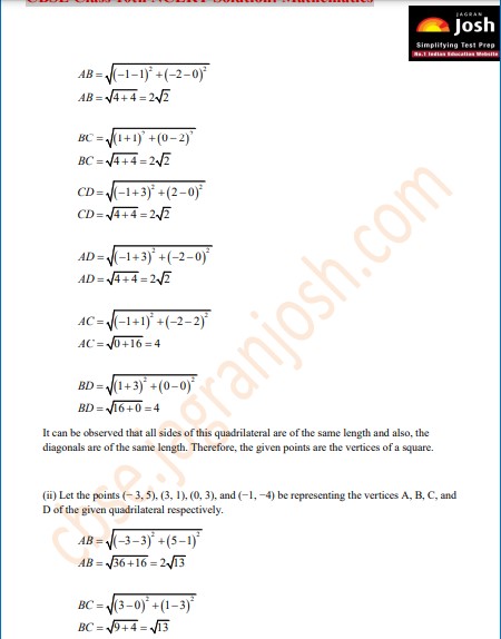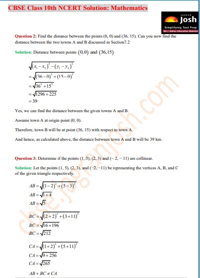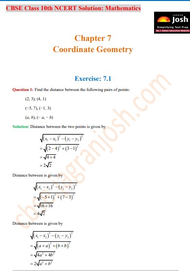 NCERT Solutions For Class 10 Maths Chapter 7 Coordinate Geometry