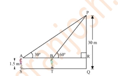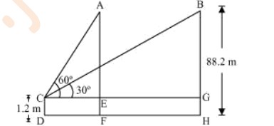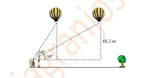 Q. A 1.2 m tall girl spots a balloon moving with the wind in a horizontal line at a height of 88.2 m from the ground. The angle of elevation of the balloon from the eyes of the girl at any instant is 60°. After some time, the angle of elevation reduces to 30°. Find the distance travelled by the balloon during the interval.
