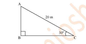 Q. A circus artist is climbing a 20 m long rope, which is tightly stretched and tied from the top of a vertical pole to the ground. Find the height of the pole, if the angle made by the rope with the ground level is 30°.