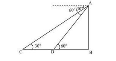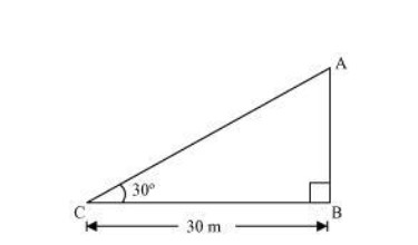 Let AB be the tower and the angle of elevation from point C (on ground) is 30°.