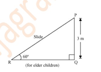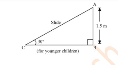 Q. A contractor plans to install two slides for the children to play in a park. For the children below the age of 5 years, she prefers to have a slide whose top is at a height of 1.5 m, and is inclined at an angle of 30° to the ground, whereas for elder children, she wants to have a steep slide at a height of 3m, and inclined at an angle of 60° to the ground. What should be the length of the slide in each case?