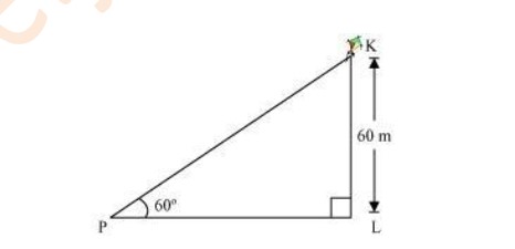 Q. A kite is flying at a height of 60 m above the ground. The string attached to the kite is temporarily tied to a point on the ground. The inclination of the string with the ground is 60°. Find the length of the string, assuming that there is no slack in the string.