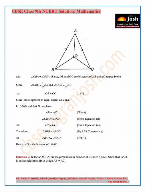 NCERT Solutions for Class 9 Maths Exercise 7.3 Chapter 7, PDF Download