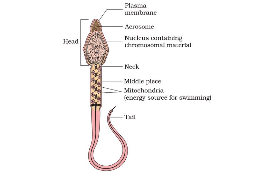 - The sperm consists of four parts: head, neck, middle piece, and tail.