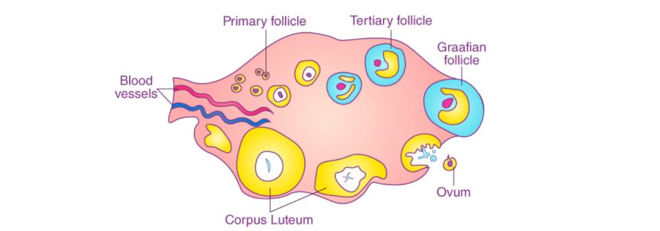 - There is one ovary on each side of the uterus. The the functions of the ovaries include release of female sex hormones, oogenesis and regulation of the menstrual cycle.