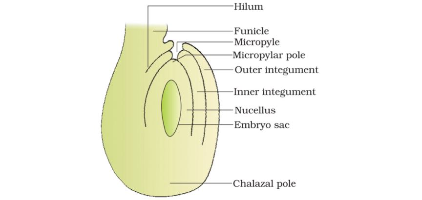 - Integument encircles the ovule entirely except at the tip where a small opening is present called micropyle.