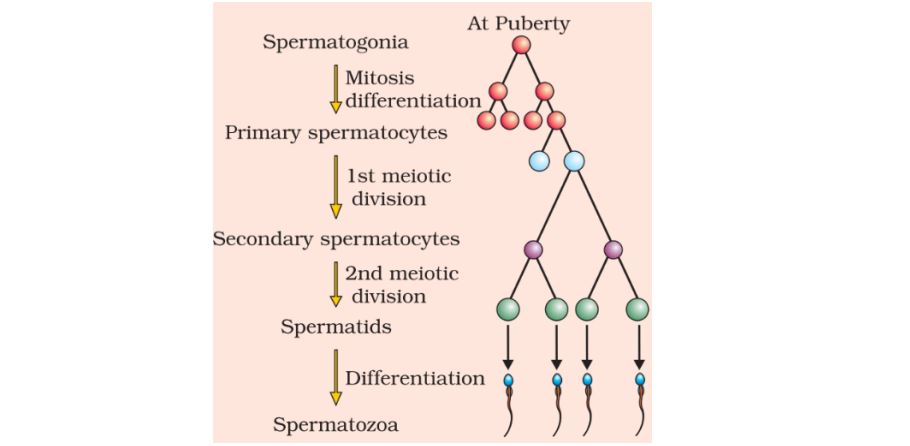 - It is the process in which diploid spermatogonia undergo meiosis to produce haploid spermatids.