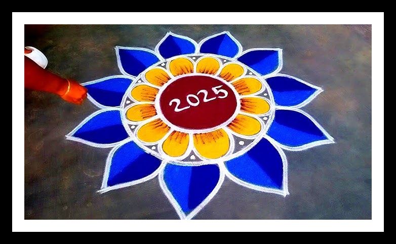 Check out the simple and creatibve rangoli designs for new year rangoli 2025:
