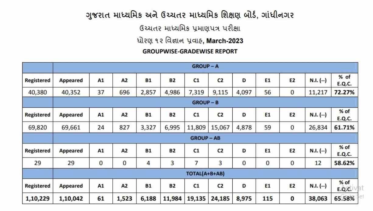 Gujarat Board Class 12 result 2023: Groupwise and Gradewise Report