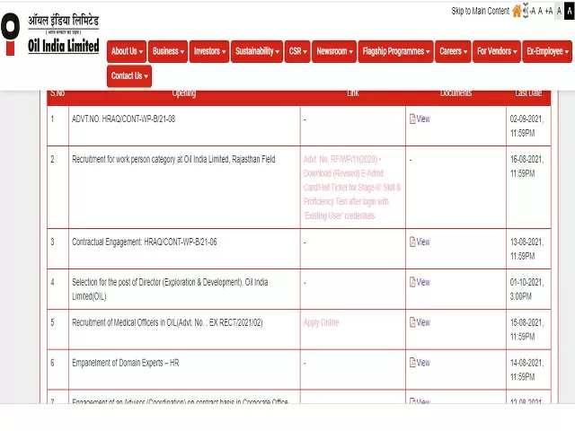 - Candidates fulfilling the above criteria may apply online through the link available on the Oil India Limited website (https://oil-india.com/Current_openNew.aspx) from 26 July 2021 to 15 August 2021.