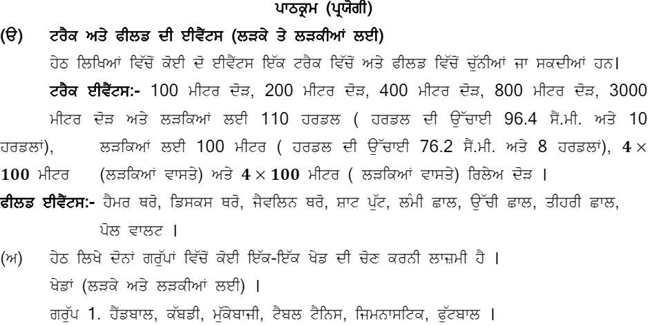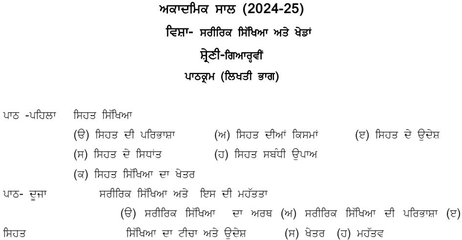 PSEB Class 11 Physical Education Syllabus 2024-25