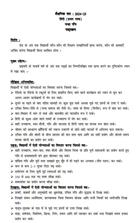 PSEB Class 5 Hindi (1st Language) Syllabus 2024-25![]()