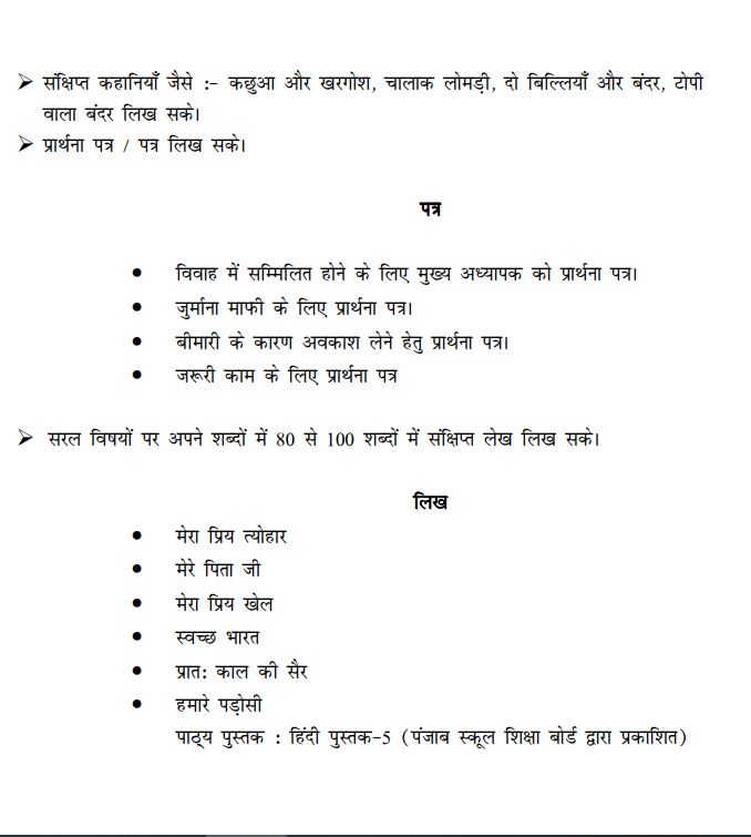 The Hindi syllabus is easily available on the official website of the Punjab board for class 5. The syllabus will cover letter writing, and paragraph writing along with some basic concepts of Grammar in Hindi.