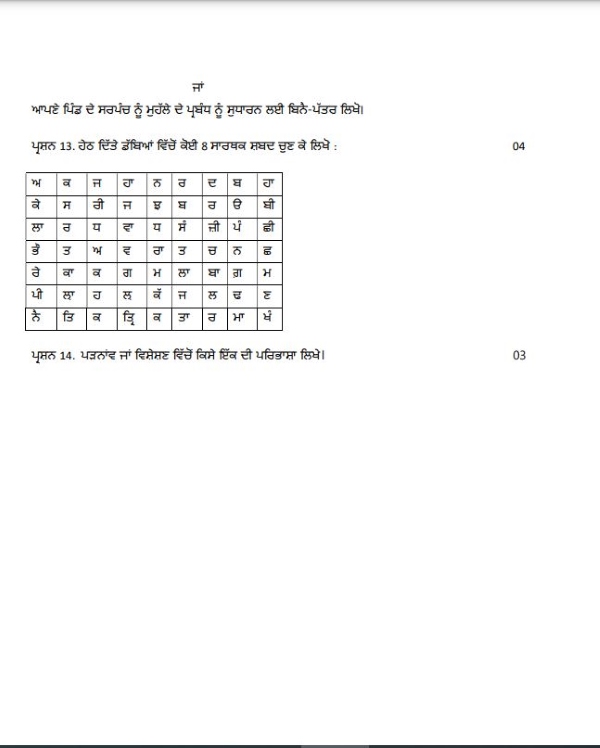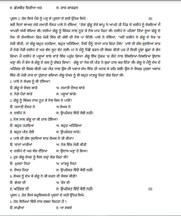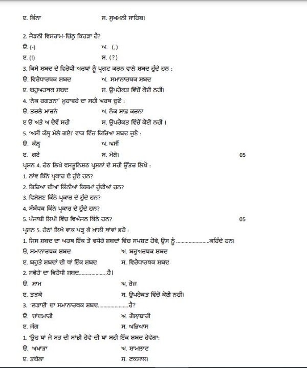CHECK: PSEB Class 8 Punjabi First Language Sample Paper 2024-25