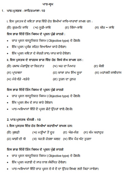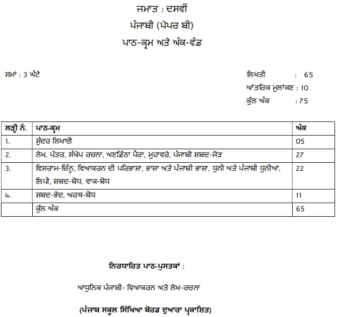 Punjab Board Class 10 Punjabi B Syllabus 2024-25