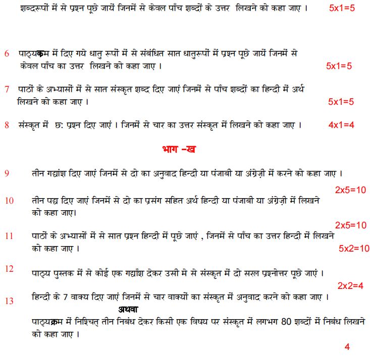 PSEB Class 10 Sanskrit Question Paper Design 2024-25