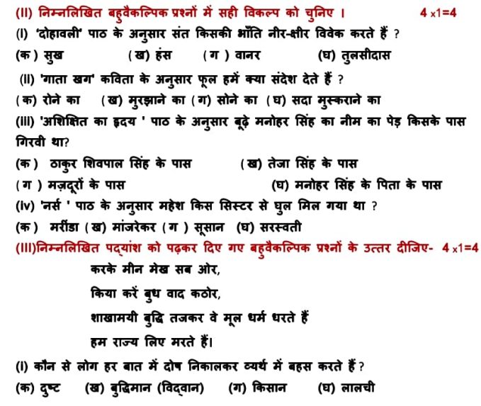 PSEB Class 10 Hindi Sample Paper 2025