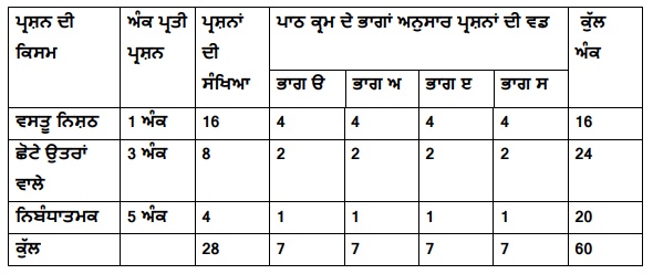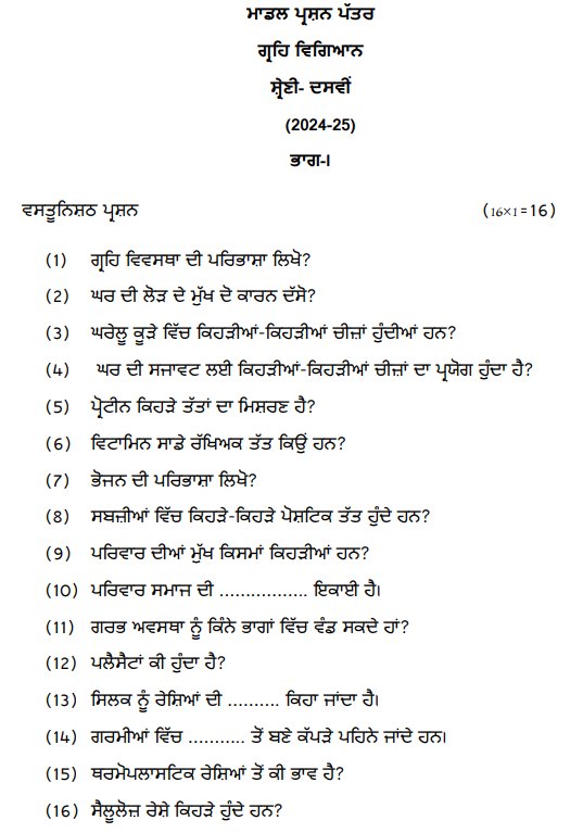 | Download PSEB Class 10 Home Science Question Paper Structure 2024-25 PDF |