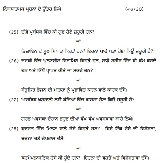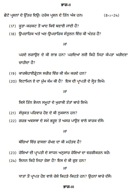| Download PSEB Class 10 Home Science Model Sample Paper 2024-25 PDF |