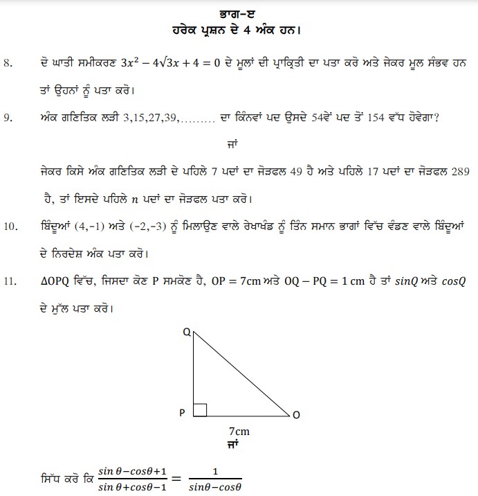PSEB Punjab Board Class 10th Maths Model Test Paper 2025: The Punjab School Education Board (PSEB) has released the 2025 Class 10 Mathematics sample paper on its official website pseb.ac.in. The model sample paper follows the latest pattern that students will see in their final board exams. Thus, it becomes very important for the students to check and solve all the recent model papers for better and more effective exam preparation.