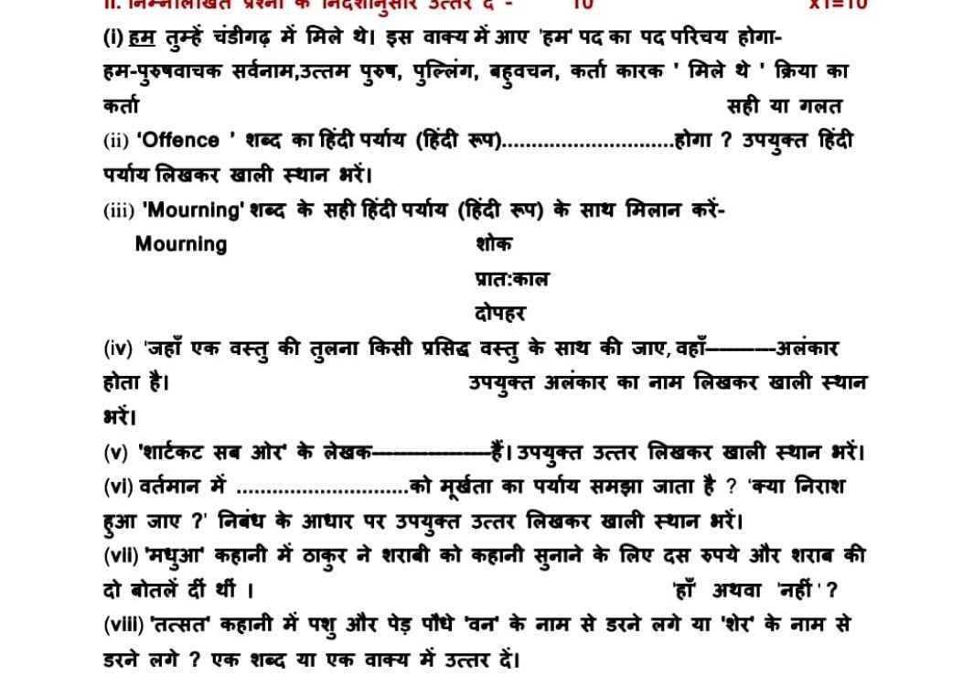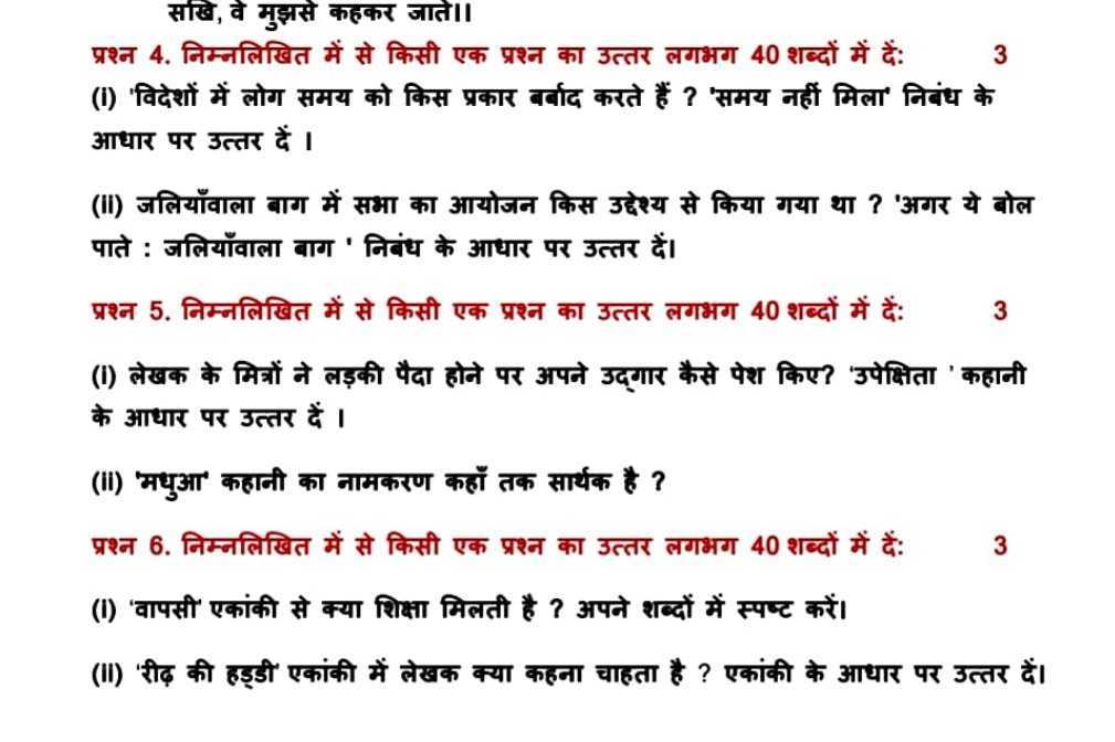 Check the questions from the PSEB Class 12 Hindi Elective model test paper for the 2025 examination.
