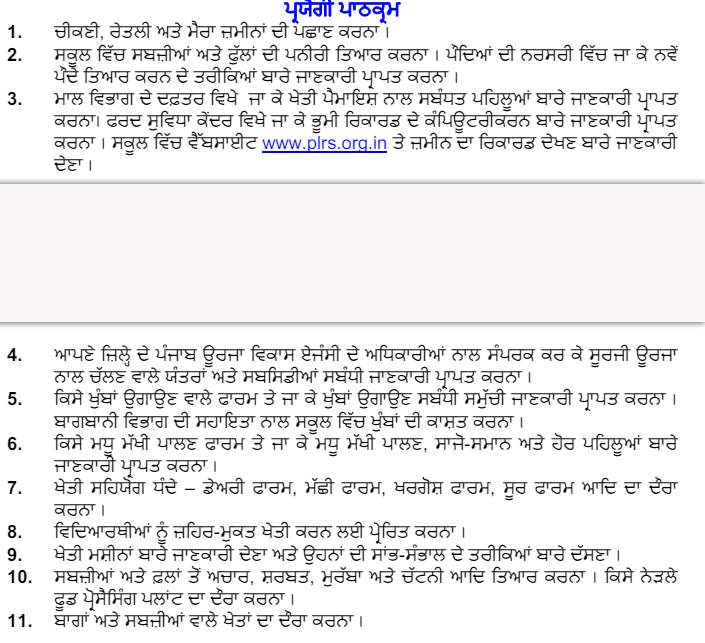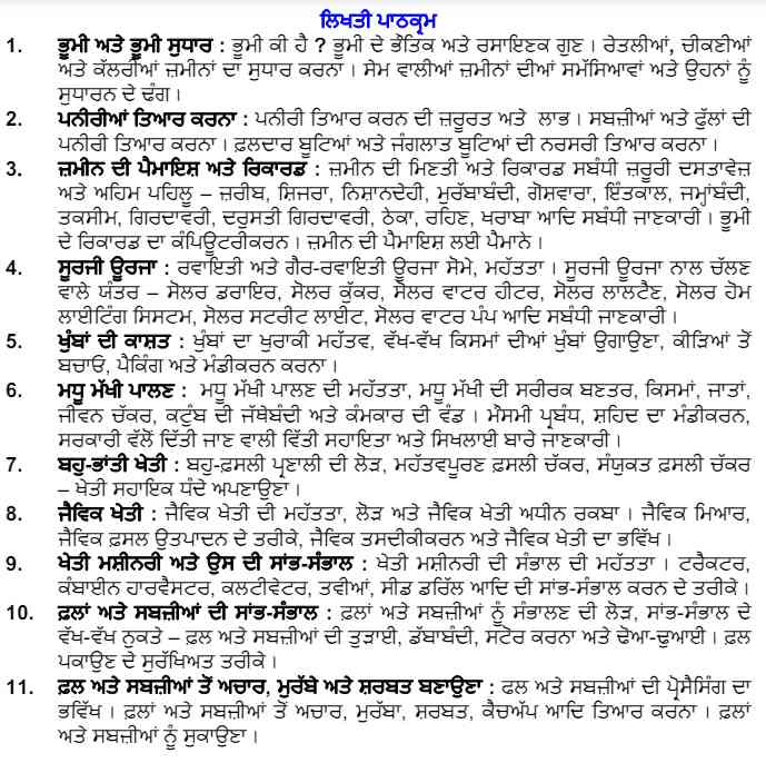 PSEB Class 8 Agriculture Syllabus 2024-25