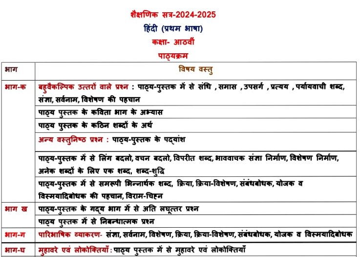 PSEB Class 8 Hindi (1st Language) Syllabus 2024-25