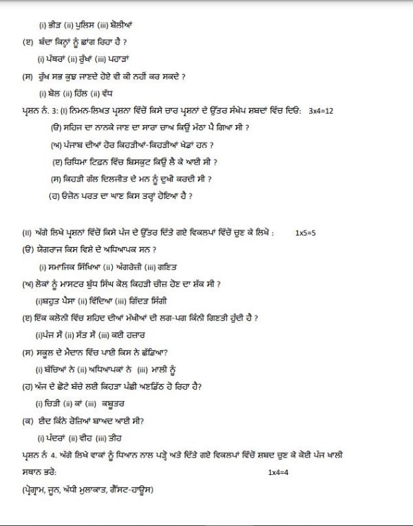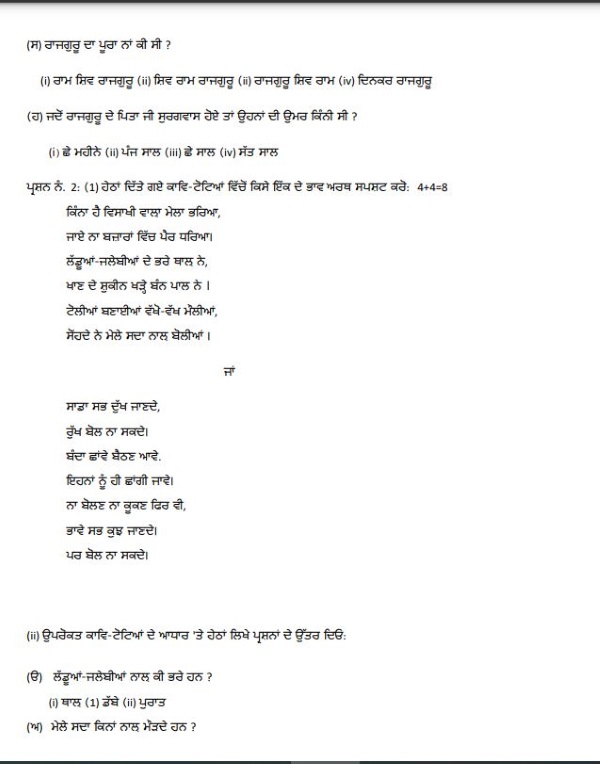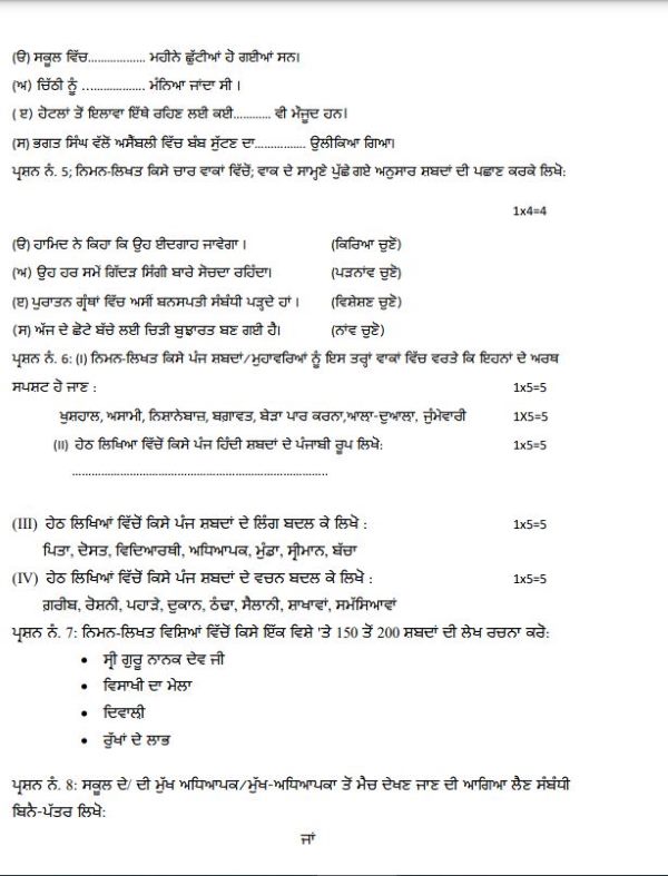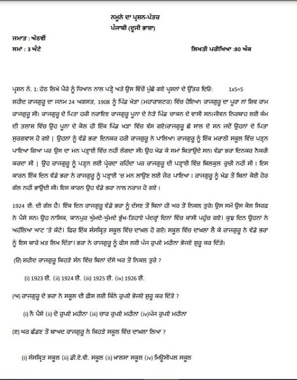 CHECK: PSEB Class 8 Punjabi Second Language Sample Paper 2024-25