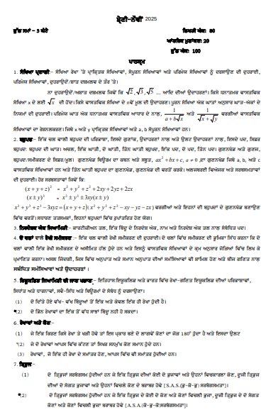 PSEB Class 9 Maths Syllabus 2025-26:Highlights