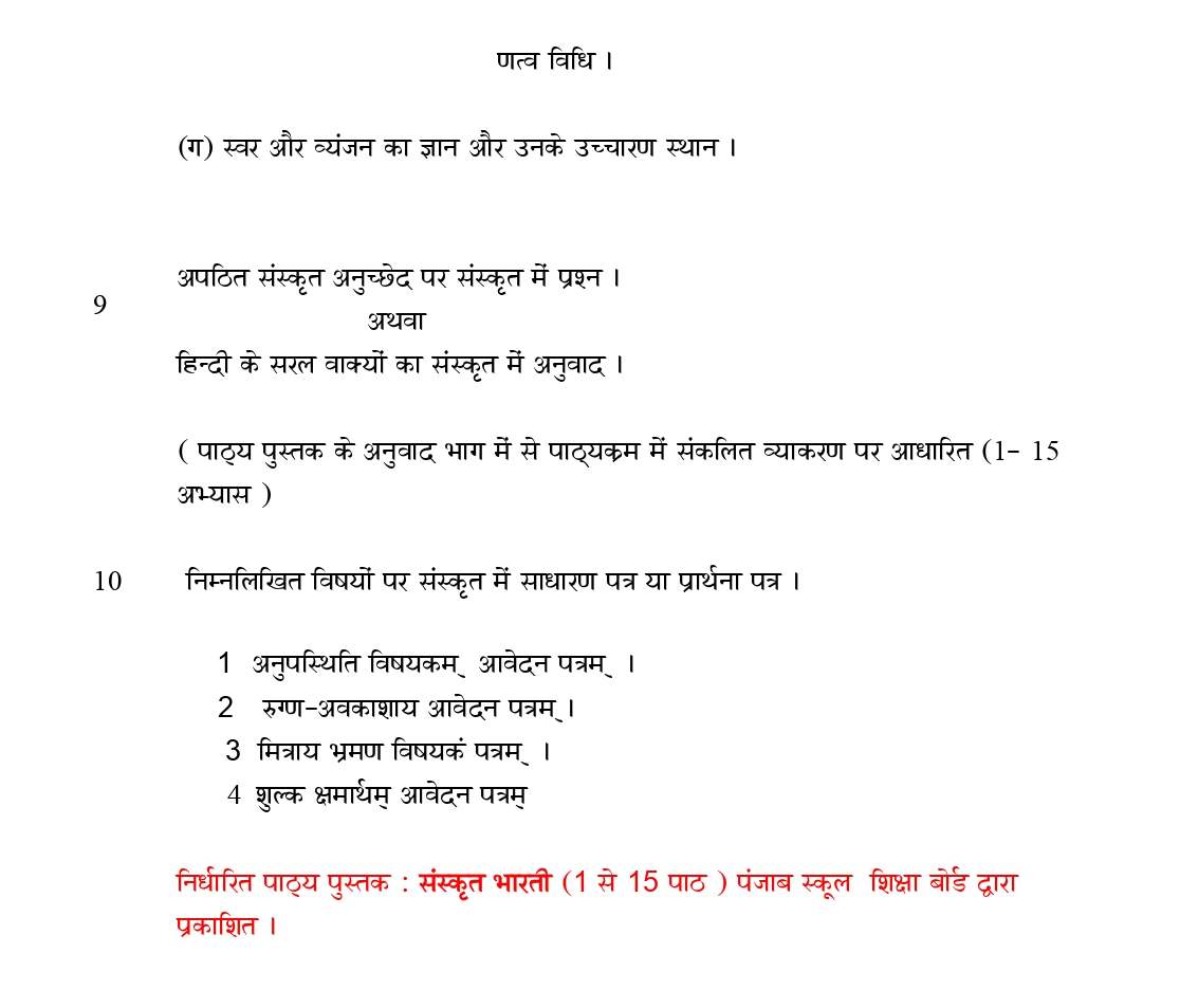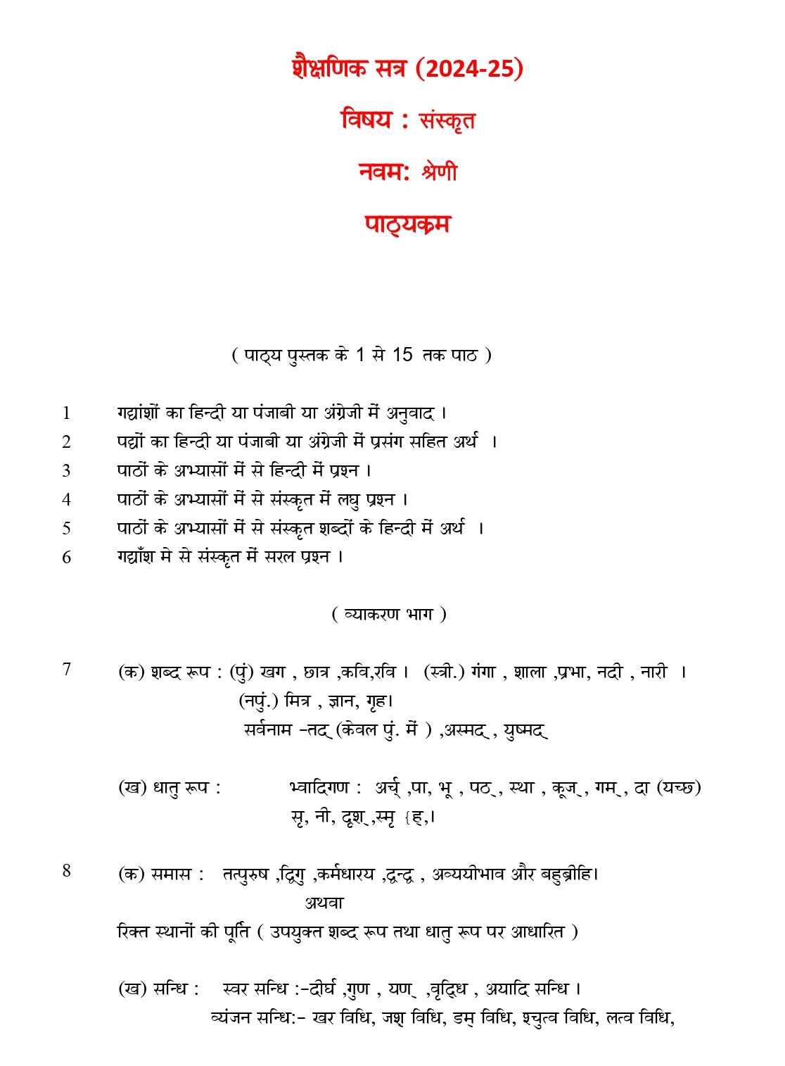 Punjab Board Class 9 Sanskrit Syllabus 2024-25