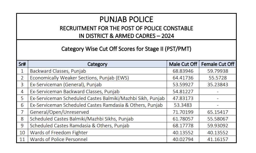 Punjab Police Result 2024:कैटेगरी वाइज कटऑफ