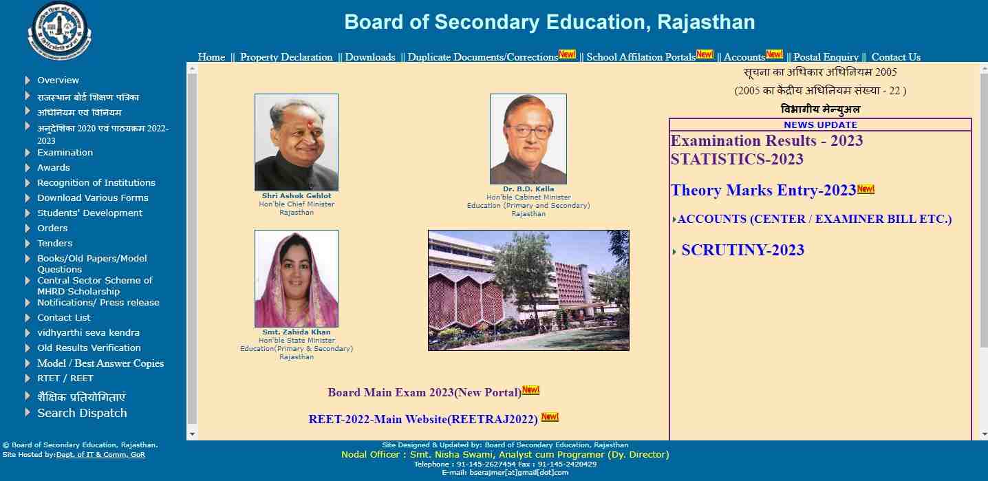 Rajasthan Board 10th Result 2023: The Board of Secondary Education, Rajasthan (BSER) has announced the class 10th result today, June 2, 2023, in online mode. According to the recent updates, the results has announced by the Hon'ble Education Minister Dr. B.D. Kalla and Hon'ble Minister of State for Education Smt. Zahida Khan in the administrative building of the Education Complex, Jaipur, at 1 PM through a press conference.