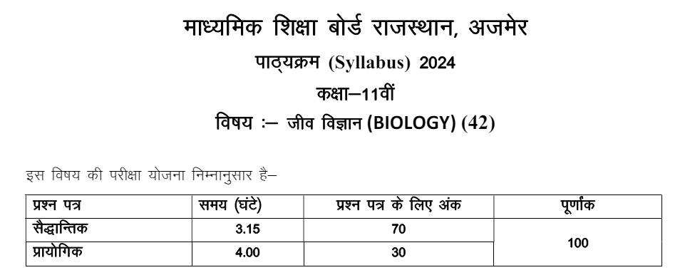 The Biology Syllabus for the academic year 2024-25 has been released by the Rajasthan Board on its official website. To get complete details, find the image and link provided in the content below. To download the RBSE 11th Biology Syllabus for 2024-25, click on the link provided at the end of this article.