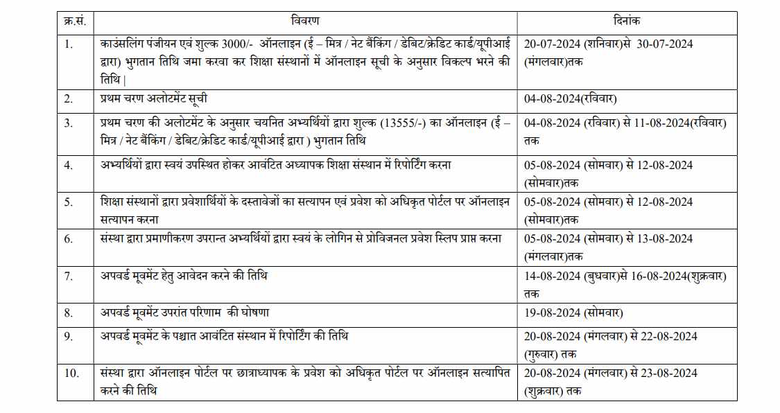 राजस्थान बीएसटीसी काउंसलिंग 2024 शेड्यूल