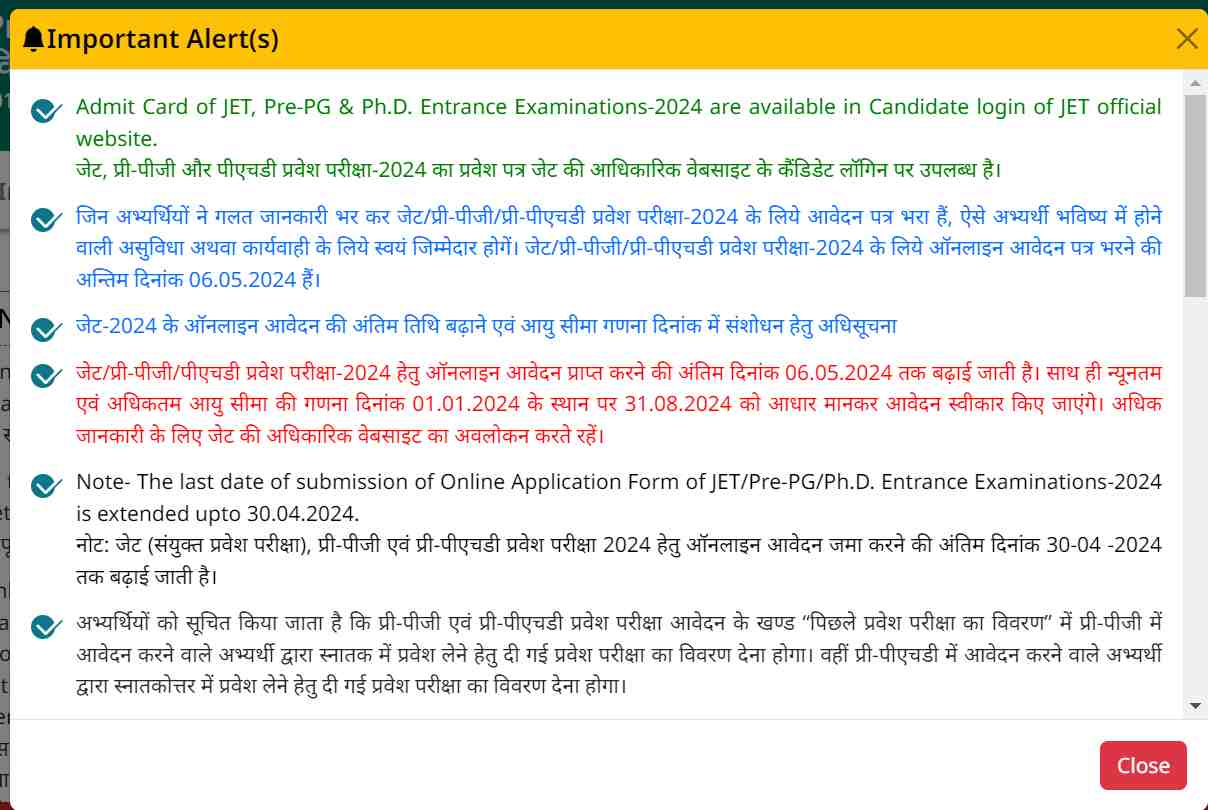 | इस लिंक से डाउनलोड करें एडमिट कार्ड | jetauj2024.com (Link Active) |