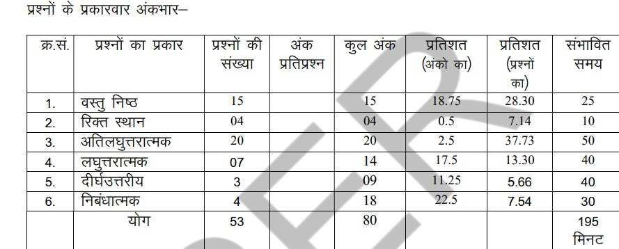 Check the design of the paper for Rajasthan Board Class 10 Hindi.