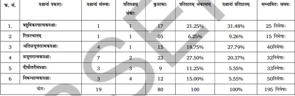 Given below is the blueprint for the RBSE Class 10 Sanskrit Model Paper 2025.