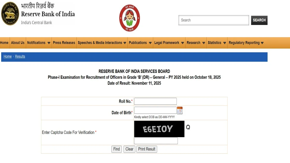 Candidates can check RBI Grade B Phase 1 Result 2025 by clicking on the direct link provided above or they can follow the simple steps listed below