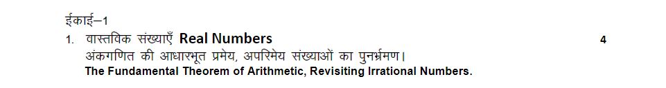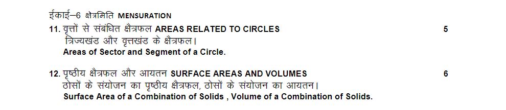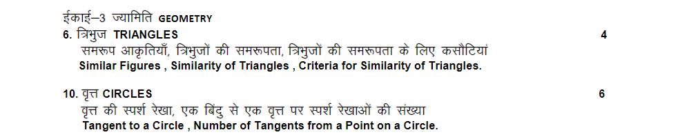 RBSE Class 10 Maths Syllabus 2024-25