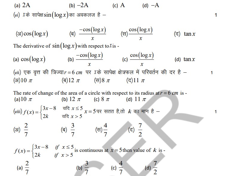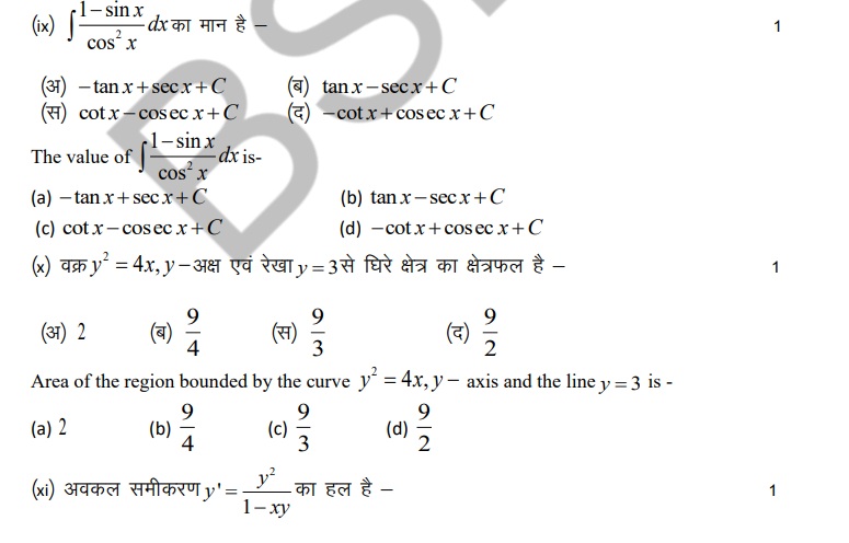 RBSE Class 12 Maths Model Paper 2025: GENERAL INSTRUCTION