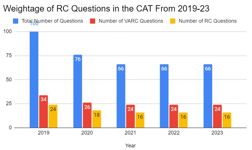 | Year | Total Number of Questions | Number of VARC Questions | Number of RC Questions |