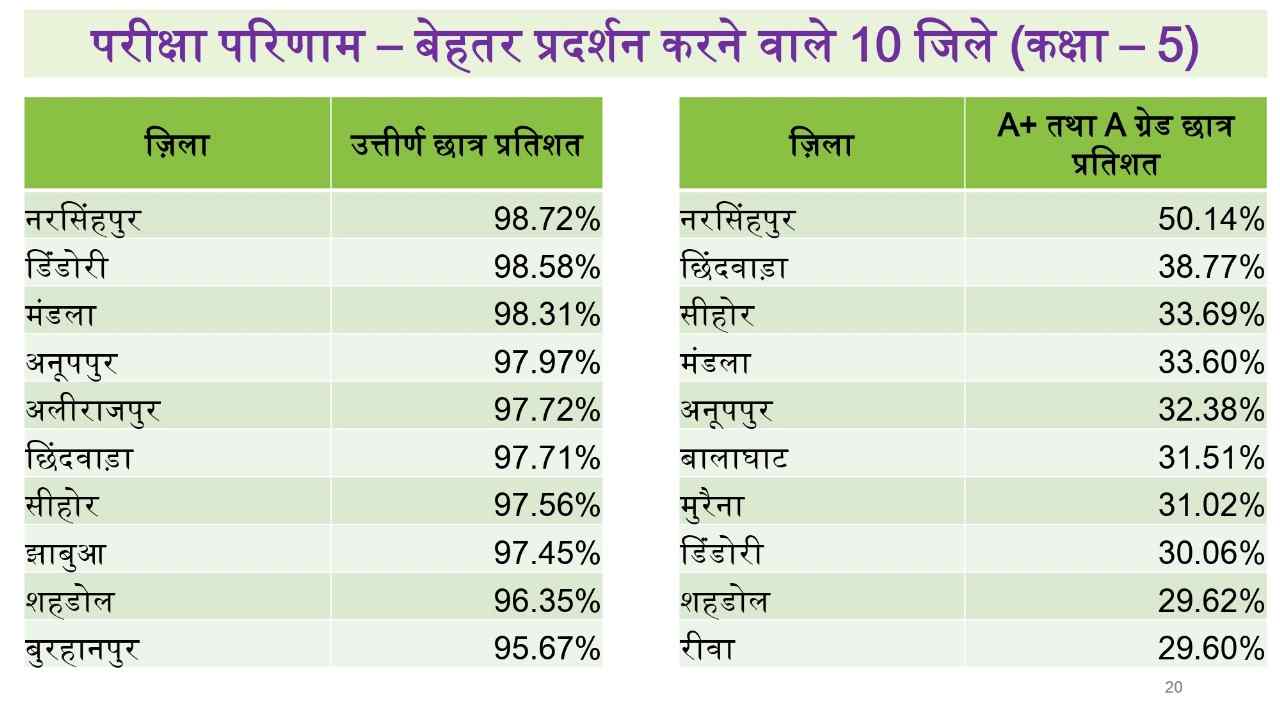 मध्य प्रदेश बोर्ड इसी सप्ताह 5वीं व 8वीं परीक्षा के परिणाम जारी करने वाला हैI इस परीक्षा में पास होने के लिए स्टूडेंट्स को न्यूनतम 33 प्रतिशन अंक (यानी 100 में से 33 अंक) प्राप्त करने होंगे।