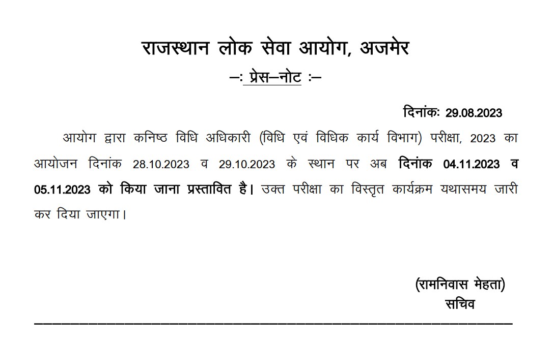 | आरपीएससी जेएलओ परीक्षा तिथि 2023 | 4 और 5 नवंबर 2023 |