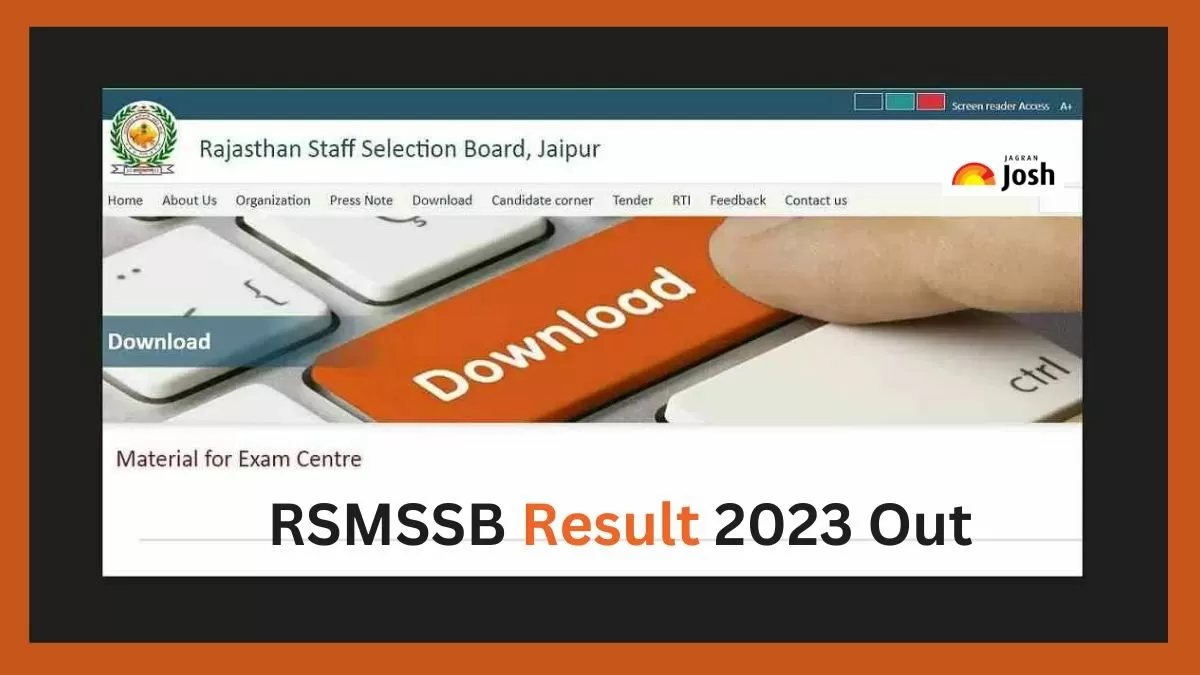 RSMSSB Result 2023 Out: राजस्थान अधीनस्थ एवं मंत्रिस्तरीय सेवा चयन बोर्ड (आरएसएमएसएसबी) ने अपनी आधिकारिक वेबसाइट पर जूनियर अकाउंटेंट और तहसील राजस्व लेखाकार और अन्य पदों के लिए परिणाम जारी कर दिया है। इन पदों के लिए चयन प्रक्रिया के अनुसार, लिखित परीक्षा में उत्तीर्ण सभी उम्मीदवार अगले मुख्य परीक्षा दौर में उपस्थित हो सकते हैं। ऐसे सभी उम्मीदवार जिन्होंने इन पदों के लिए आवेदन किया है, वे आरएसएमएसएसबी की आधिकारिक वेबसाइट-rsmssb.rajasthan.gov.in पर उपलब्ध परिणाम पीडीएफ देख सकते हैं।