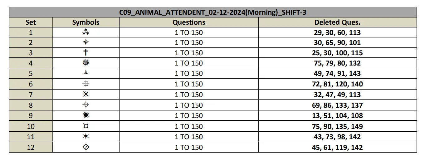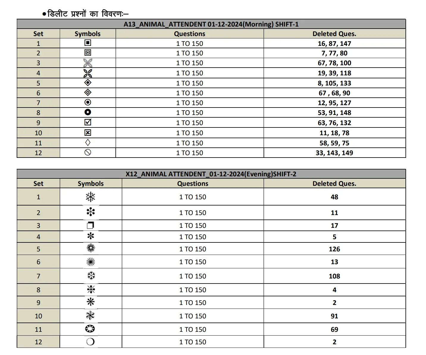 पशु परिचर रिजल्ट 2025 हटाए गए प्रश्नराजस्थान पशु परिचर भर्ती परीक्षा 2024 के परिणाम घोषित हो गए हैं। इस परीक्षा में कई प्रश्न हटाए गए थे, जिनकी सूची निम्नलिखित है: