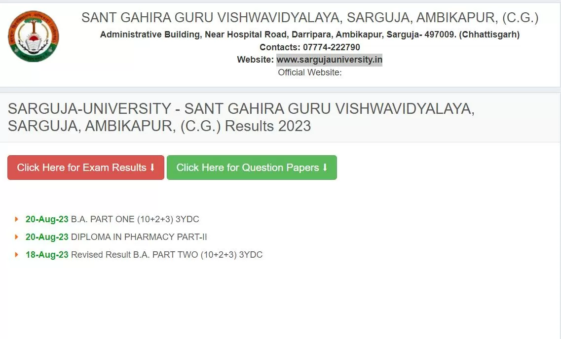 Sant Gahira Guru University BA 1st Year Result 2023: हाइलाइट