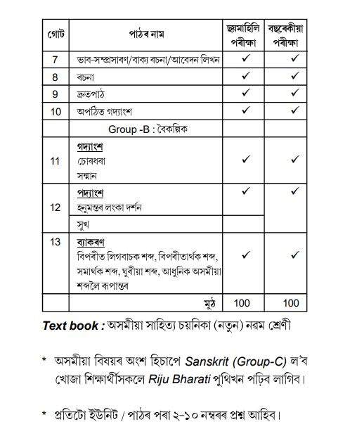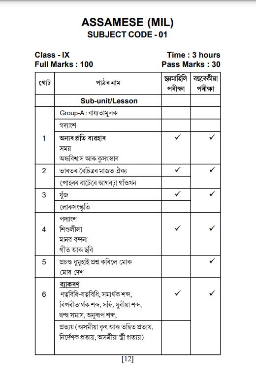 The paper will consist of 100 marks. With the help of the syllabus and proper learning, students can score well on the exam. The time given for the exam will be 3 hours. According to the official syllabus released by the Assam board, the passing mark for the exam is 30. Take a look at the syllabus below:-